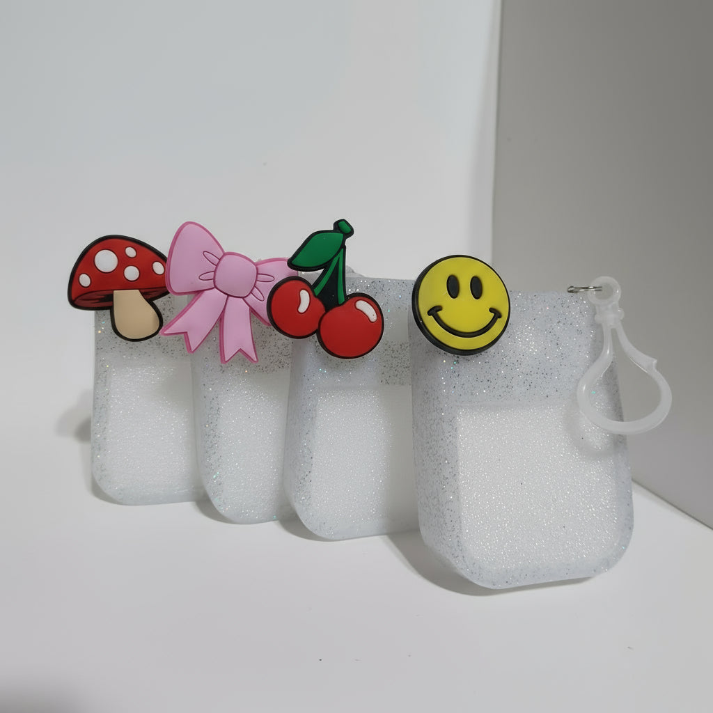 Keep your hands clean and your vibe fun with this adorable silicone sanitizer case. Clip it to your keys with the built-in keychain attachment, then tap the emoji button to match your mood while you sanitize. Whether you're heading to work, the gym, or out on the town, this little accessory brings personality to your hand hygiene routine..