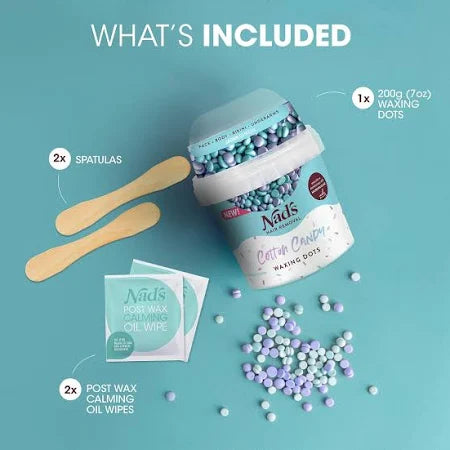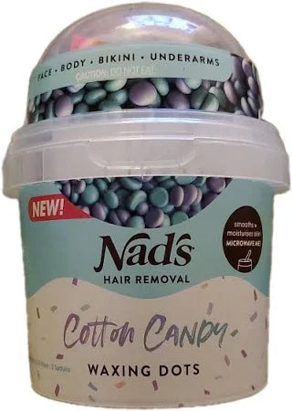 Nad's Cotton Candy Waxing Dots in Microwaveable Jar Hair Removal & Oil Wipes Moisturizes Skin. New in Package. For Face Bikini area Body & Underarms.