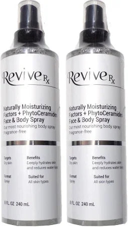 REVIVE Rx: Naturally Moisturizing Factors & Phytoceramides Face & Body Spray. Deeply hydrates skin and reduces water loss. Suited for all skin types.